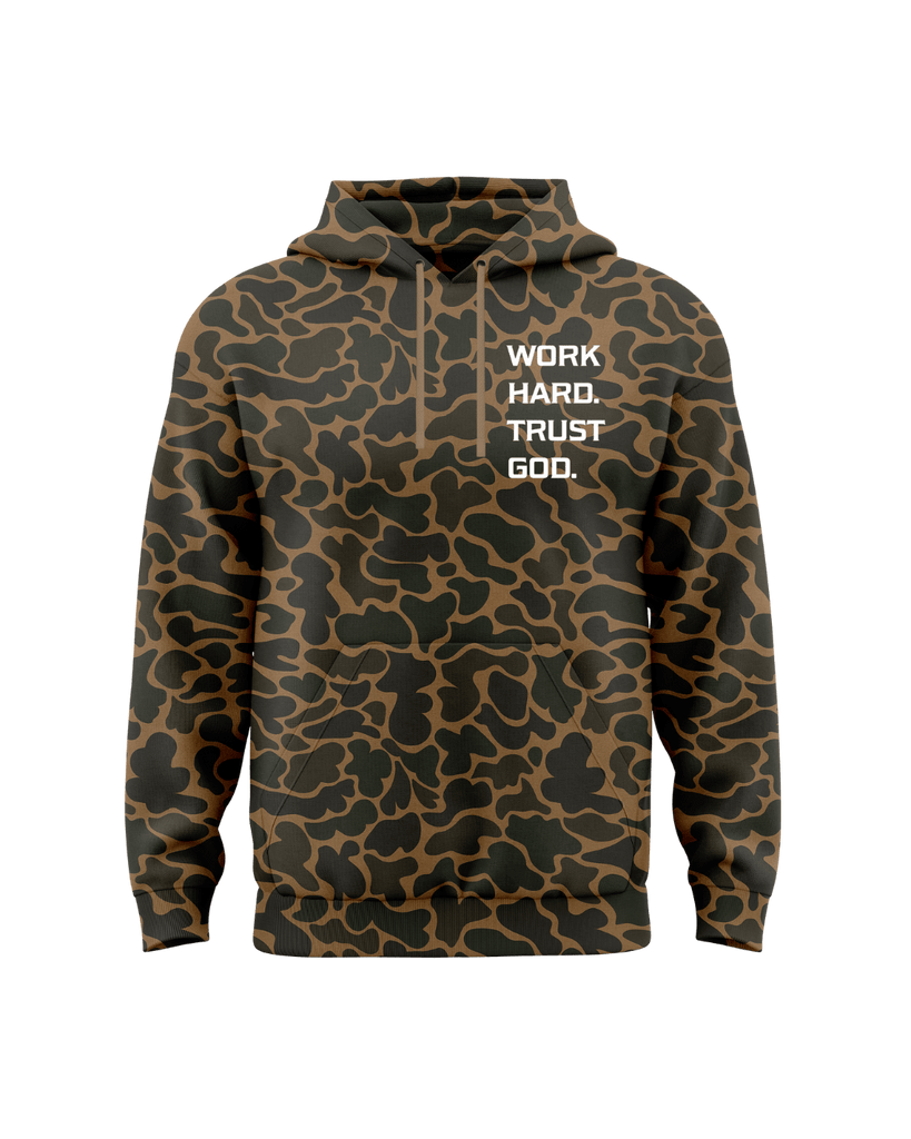Introducing our premium heavyweight Trust God Duck Camo hoodie, crafted with the finest materials for unbeatable comfort and style. Made from a blend of ring-spun cotton and polyester, this hoodie offers superior warmth and durability.